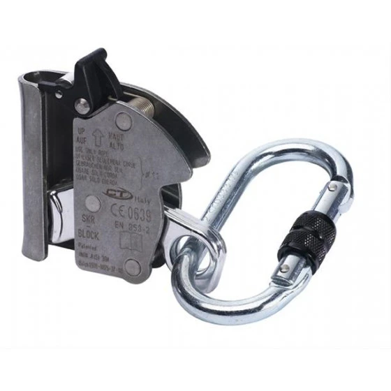 Dispositif stop chute simple et facile à utiliser, en acier inoxydable Adapté pour cordage statique polyamide D. 10,5 m/m à 11 m/m (type : corde tressée à faible allongement) En extrémité supérieure une boucle cossée, cousue avec gaine thermorétractable En extrémité inférieure un nœud simple avec contre poids Verrouillage automatique pour utilisation verticale Il n’y a pas besoin d’un système de dissipation de la secousse L’utilisateur doit toujours se trouver en dessous du point d’ancrage avec la corde tendue Dans la position de travail, l’utilisateur doit avoir en dessous de lui une hauteur minimale de 2 Mètres. Vérifiez qu’il n’y a aucun obstacle sur le parcours lors d’une éventuelle chute. L’antichute fait partie intégrante d’un dispositif de sécurité L’utilisateur devra vérifier la compatibilité d’emploi entre les différents éléments constitutifs