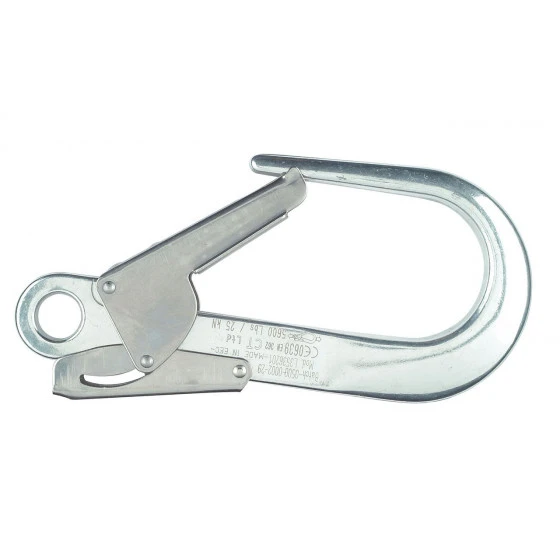 Mousqueton en aluminium. Verrouillage automatique à double sécurité. Grande ouverture 60 mm. Appareil d’accrochage rapide sur structures tubulaires. Résistance : 22 kN
