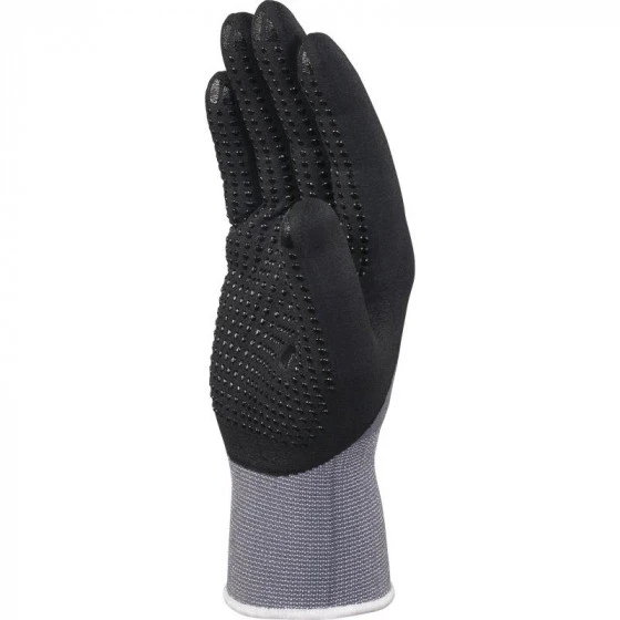 Enduction nitrile/polyuréthane sur paume, bout des doigts et mi-dos.