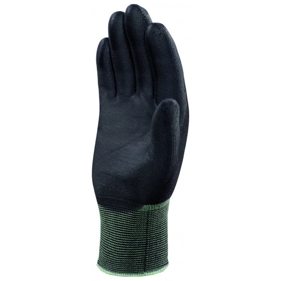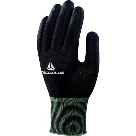 100% polyamide. Enduction polyuréthane sur paume et bout des doigts.