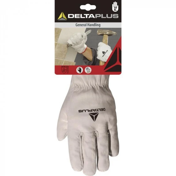 GANTS DELTA PLUS TOUT FLEUR DE BOVIN GRIS LISERE ROUGE TAILLE 10- DPFBN4910