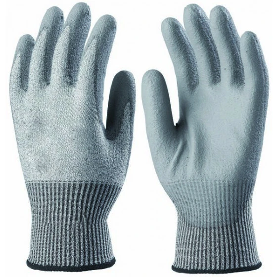 Gant tricoté fibres de verre/élasthanne/fibres synthétiques. Paume enduite polyuréthane. Avantages spécifiques : très bonne résistance à la coupure, très bonnes dextérité, flexibilité et adhérence. Léger. Utilisation : travaux précis et manipulations de pièces et composants tranchants. Polissage, montage automobile, industrie du verre.