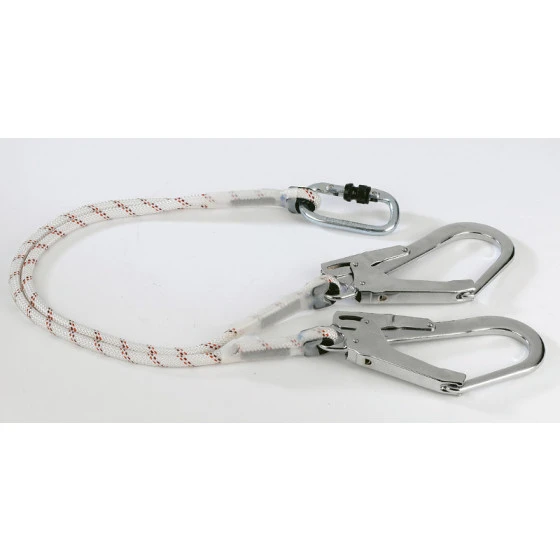 Longe fourche en cordage polyamide statique diamètre 10.5 mm de 1 mètre avec 2 brins d’ascension équipé chacun d’un mousqueton grande ouverture référence 39 et d’un mousqueton référence 40 à l’autre extrémité. Ce système permet à l’utilisateur de se déplacer tout en restant constamment connecté
