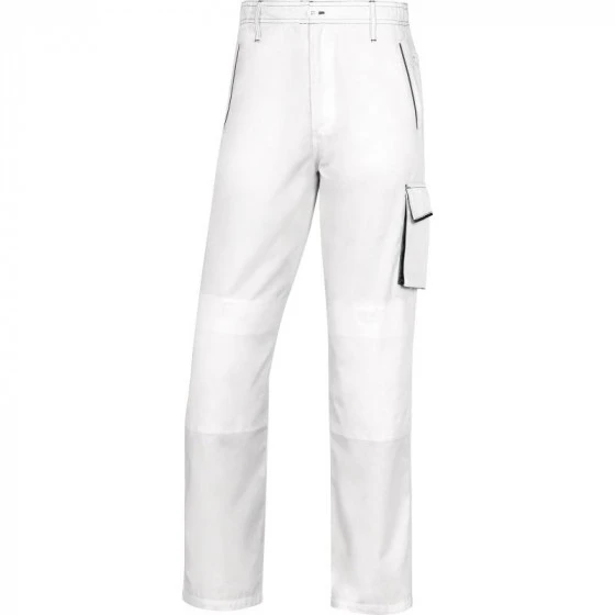 Pantalon. Taille côtés élastiqués. 5 poches dont 1 mètre.Sergé 65% polyester 35% coton 235 g/m².