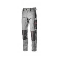 Pantalon avec genouillères en coton canvas élastique et contrastes en polyester oxford résistant à l’abrasion, poche latérale avec fermeture éclair et détail rouge thermocollé.