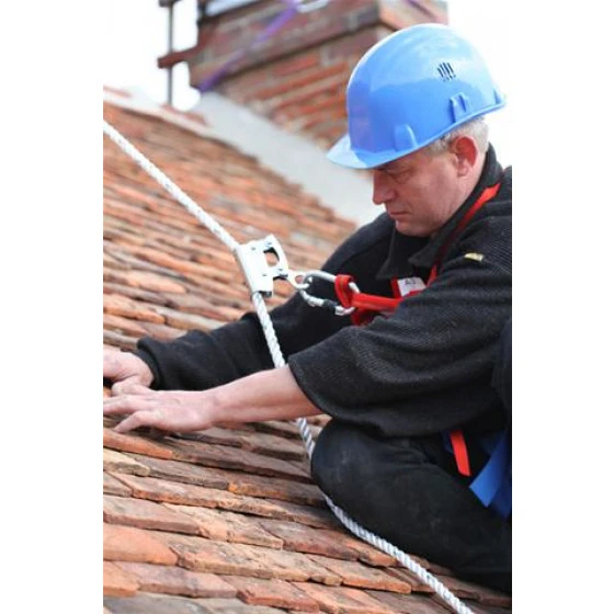 Il permet à l’utilisateur d’avoir sa longe toujours en tension entre son point d’amarrage et son poste de travail. Un double système de blocage bloque instantanément le cordage.